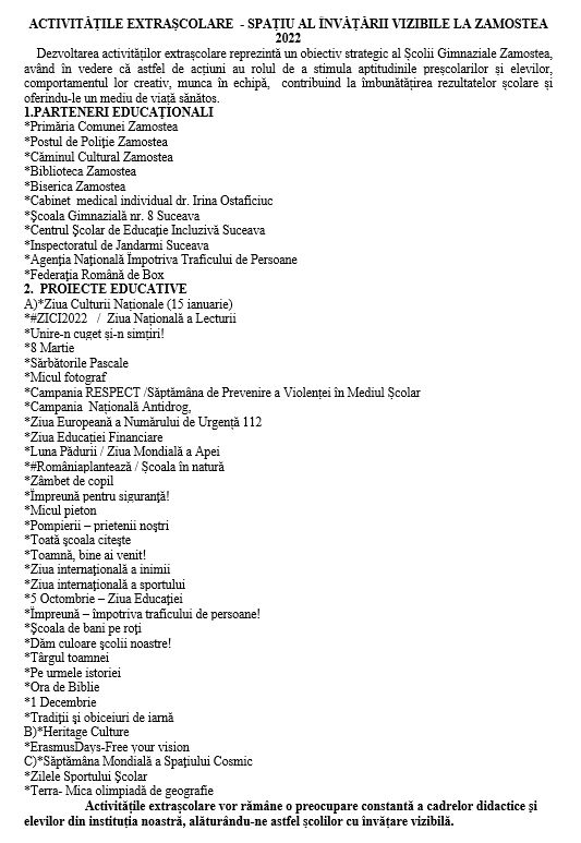Coord: prof. Cojocariu Ioana-Maria, prof. Bujder Ramona, prof. Cojocariu Corina.